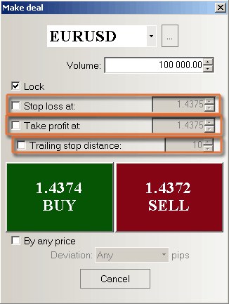 يتم وضع الاوامر المرتبطة في نافذة“ صفقة ” أثناء فتح الصفقة التجارية :
